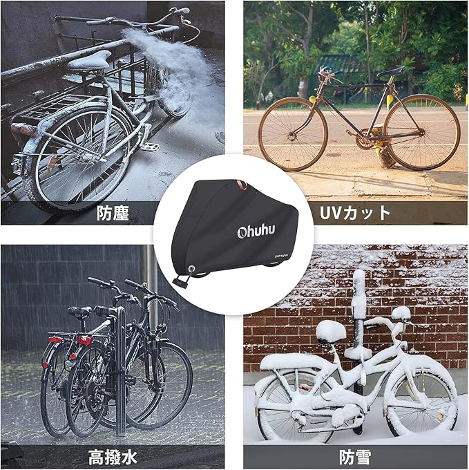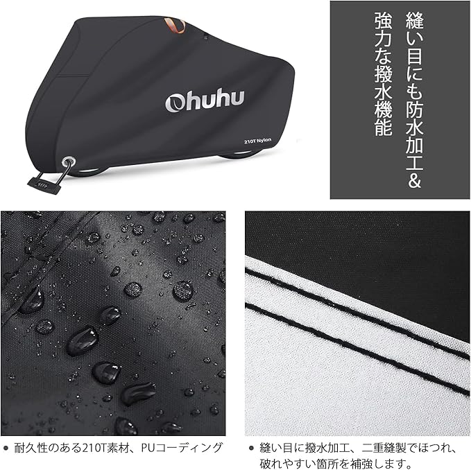 Ohuhu 自転車カバー 防水 厚手 破れにくい 300D 210D 210T 190T雨避け UV加工 防風 盗難防止 29インチまで対応 通常サイズ 収納便利