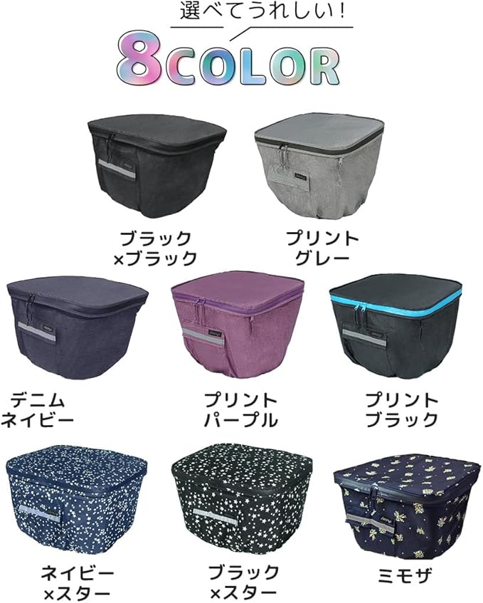同色後かごカバー別売(MY-170)と一緒に使えば、前後の自転車カバー色を揃えることができます。 ※商品の色はブラウザやお使いのモニターの仕様、設定により実際の商品と異なる場合がありますのでご了承くだい。 ※使用や洗濯を繰り返すことで撥水は低下します。