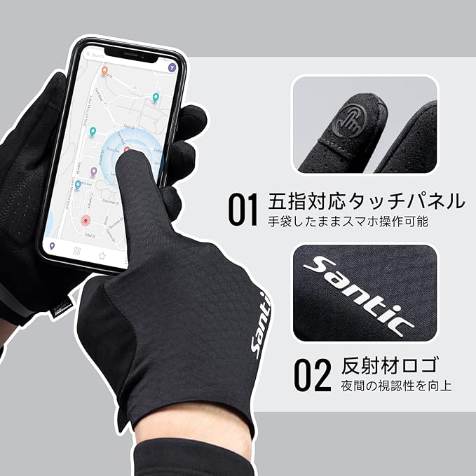 [サンティック] 自転車グローブ サイクリンググローブ 春 秋 冬 裏起毛 防寒手袋 スマホ対応 ロードバイク スポーツ 衝撃吸収 メンズ レディース 6色展開
