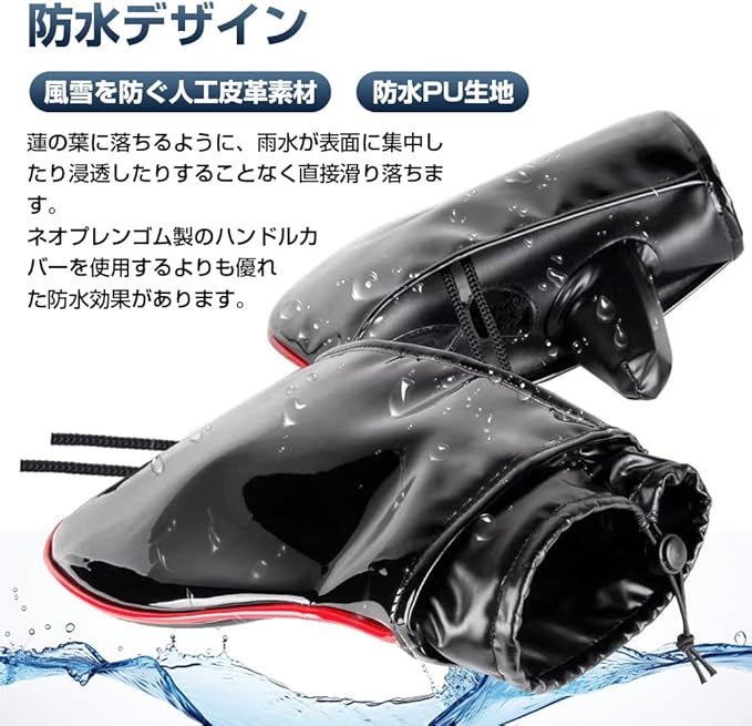 2025 バイク用ハンドルカバー ハンドルウォーマー PU防水外層 防寒 防風 冬対策 汎用 ハンドル防風カバー バイク/オートバイ/原付用 取付簡単 手袋着用可