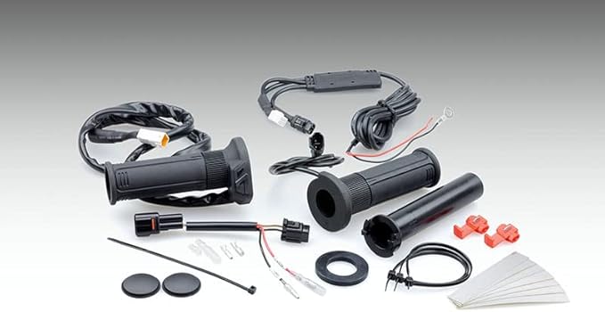 電子スロットル用専用スロットルパイプ、分岐配線、スペーサーなど取付に必要なパーツと一緒にGH07グリップヒーターがセットに。