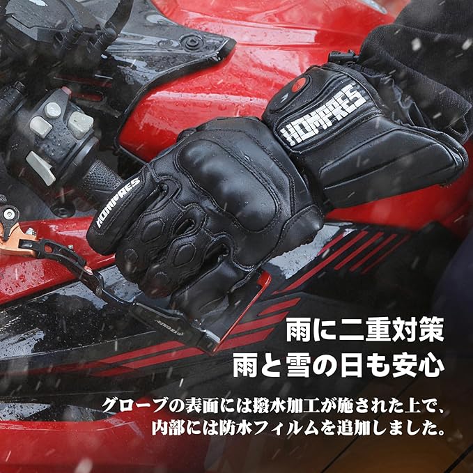 Hompres 全体PU革電熱グローブ 11.1V両面全体発熱 手のひらと同面の指先発熱 残量表示 バイク用 4段階温度 防寒防水ヒーター手袋 シガーソケット給電 スマホ対応 滑り止め メンズ レディース インナーグローブ付き