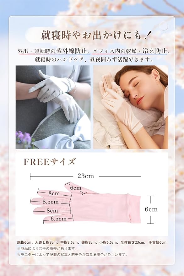 [Pawinpaw] シルク 手袋 uvカット おやすみ手袋 紫外線対策 天然シルク100% レディース グローブ【ハンドケアアドバイザー推薦・保湿・薄手】 通気 ナイトケア 日焼け止め 就寝用/自転車/通勤/運転