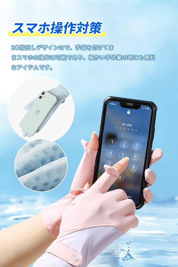【2本指出しスマホ操作に対応】UV手袋 レディースは親指と人差し指の指先部分を出せる設計を採用し、手袋を付けたままスマートフォン、タブレット、カーナビに操作できて便利です。ガーデニングなど細かい手作業の時にも便利なレディース 手袋です。手のひらには滑り止め付きますので、運転や自転車などにも対応できます。しっかりハンドルが握られて、安全性も高いです。