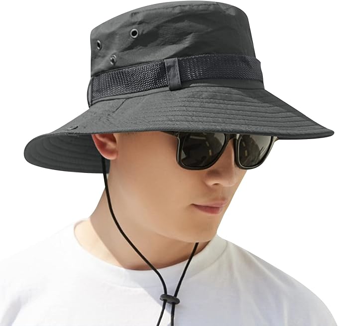 [Pawinpaw] サファリハット メンズ つば広 帽子【UVカット・通気構造・2way・軽量】 日除け帽子 大きいサイズ 日焼け 防風 あご紐付き 夏用 おしゃれ 自転車/釣り/登山/日除けハット アウトドア 男性