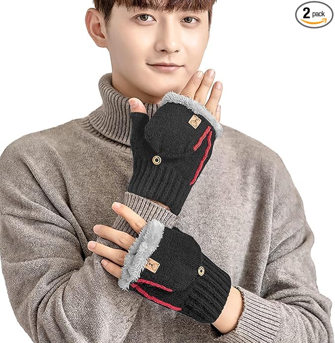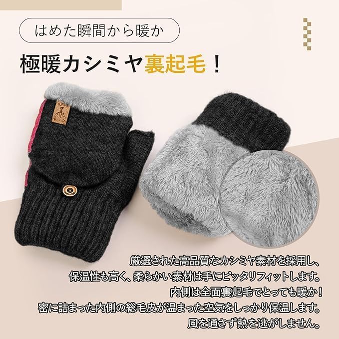 [Gagaciso] メンズ 手袋 指なし 秋冬 防寒 裏起毛 2WAY スマホ対応 操作便利 ミトン手袋 おしゃれ 手袋 カバー付 あったか 裏起毛 厚手 暖かい 冬 事務 自転車 撮影 登山 おしゃれ プレゼント