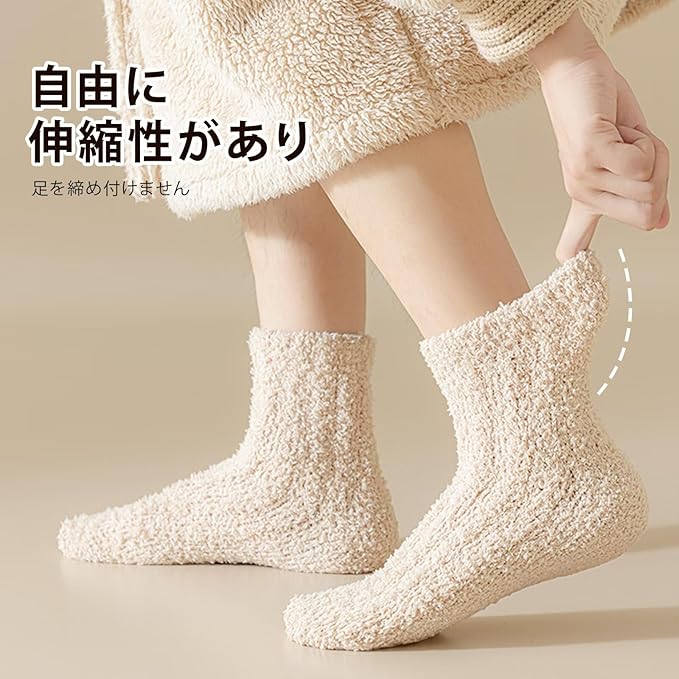 [ZVCXOE] モコモコ靴下 レディース ルームソックス 冬 暖かい ウールソックス 防菌防臭 防寒保温 もこもこ 冷え性 靴下 耐久性 伸縮性 男女兼用 厚手 スキー アウトドア 5足セット 23-26cm