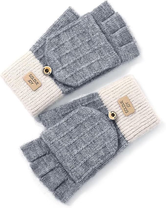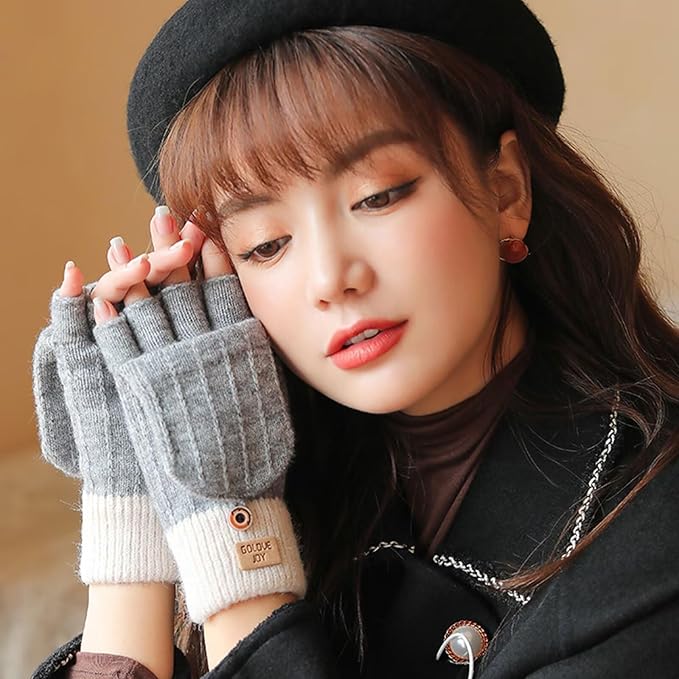[ZVCXOE] ミトン手袋 レディース 指なし 冬用 2WAY手袋 スマホ対応 半指手袋 指切り てぶくろ グローブ 指出し カバー付き ニット製 通勤 通学 可愛い ふんわり 防寒