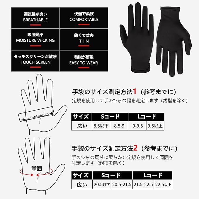 【高い器用性】柔らかいポリエステルと高伸縮性のスパンデックス生地で作られています。4方向に伸縮するのでぴったりフィットし、重い手袋の器用さを向上させます。サイズはすべての女性と男性にフィットします。