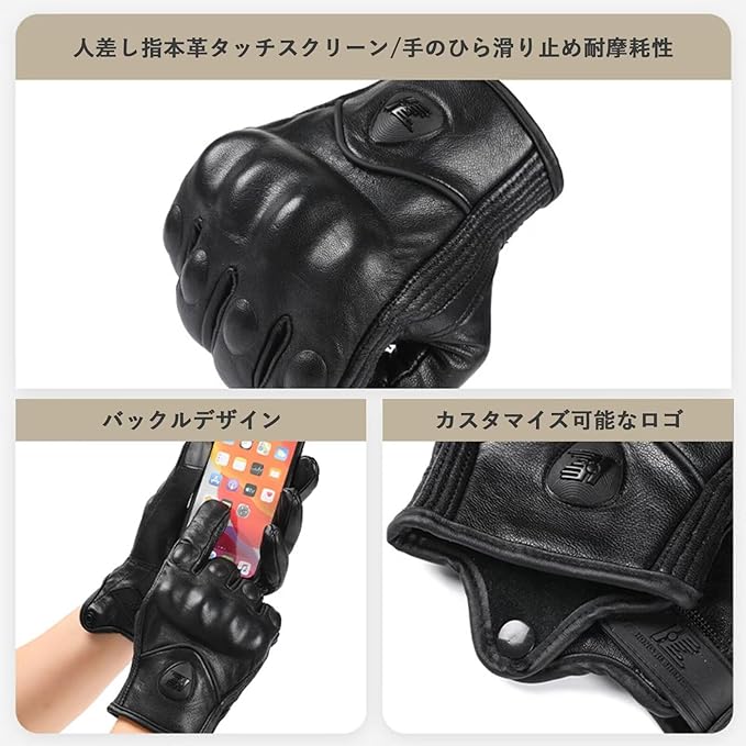 ZVCXOE バイクグローブ 本革 バイク手袋 オートバイグローブ ヤギ革 スマホ対応 撥水 春夏秋冬 メンズ レディース 自転車 アウトドア 耐衝撃 耐用性