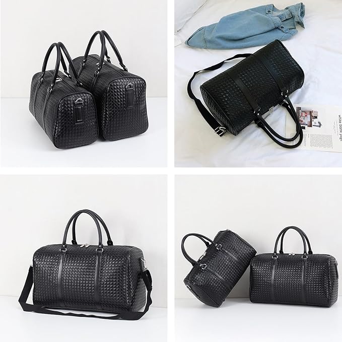 【商品概要】PUレザー編み込みボストンバッグ。編み込みデザインでシンプルながら上品で高級感のある仕上がり。男性、女性ともにご使用いただけます。