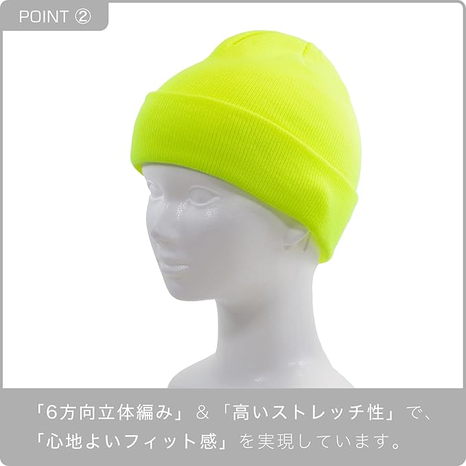 【商品概要】シンプルなデザインでコーディネートしやすいニットキャップです。肌触りが良く、ストレッチ性が高く、薄すぎず厚すぎない程よい厚みで、柔らかく軽い被り心地とフィット感の良さが特徴です。