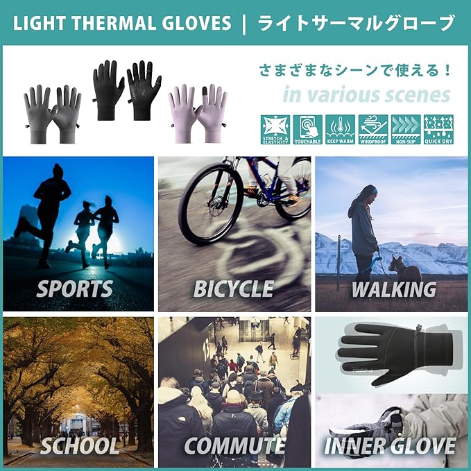[DALO] ライトサーマルグローブ 防寒手袋 薄手 裏起毛 スポーツ ランニング 通学 滑り止め 防寒 防風 保温 男女兼用 タッチパネル対応 [LTG-D6]