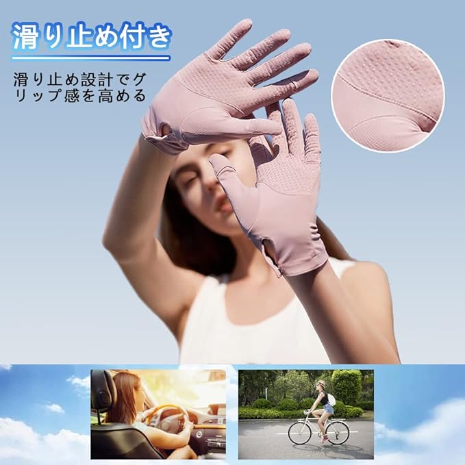 [MEPOKI] レディース UVカット手袋【接触冷感・右手2指出しで細かい作業が楽】夏用グローブ 通気性あり 日焼け防止 紫外線対策 滑止め付け 自転車 ドライブ