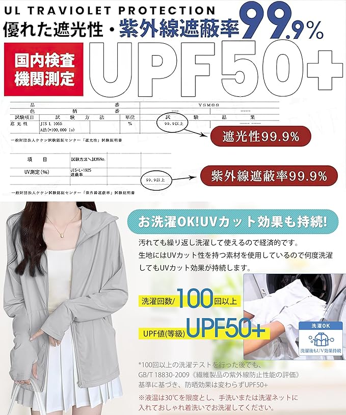 [GAOTEK] ラッシュガード レディース パーカー UVカット 【皮膚科医監修・UPF50+測定済み・接触冷感】 冷感パーカー 抗菌防臭 大きいサイズ 日焼け対策 吸汗速乾 通気性 指穴あり 夏 水着 軽量 薄手 体型カバー 可愛い