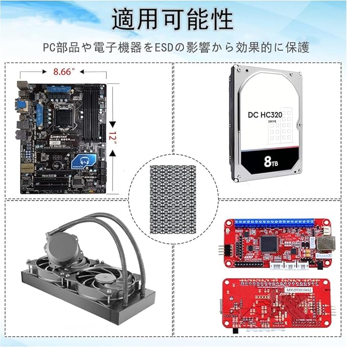 【多用途】LED、液晶パネル、IC集積回路、PCBボード半製品/完成品に使用でき、マザーボード、GPU、プロセッサー、グラフィックスカード、ハードディスクなどの精密電子部品の保管と輸送包装に使用できる。