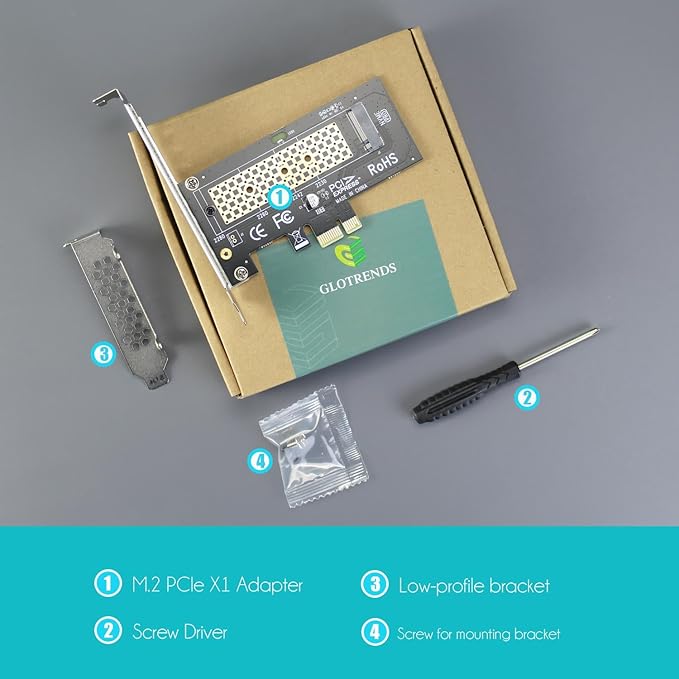 GLOTRENDS PA09-X1 M.2 PCIe X1変換アダプターカード、M.2 PCIe 4.0/3.0/2.0 SSD (NVMe/AHCI Key M)用M.2ネジ付き、M.2 SSD 拡張カード、PCIe X1/X4/X8/X16 レーンに対応、PCIe X1帯域幅だけ