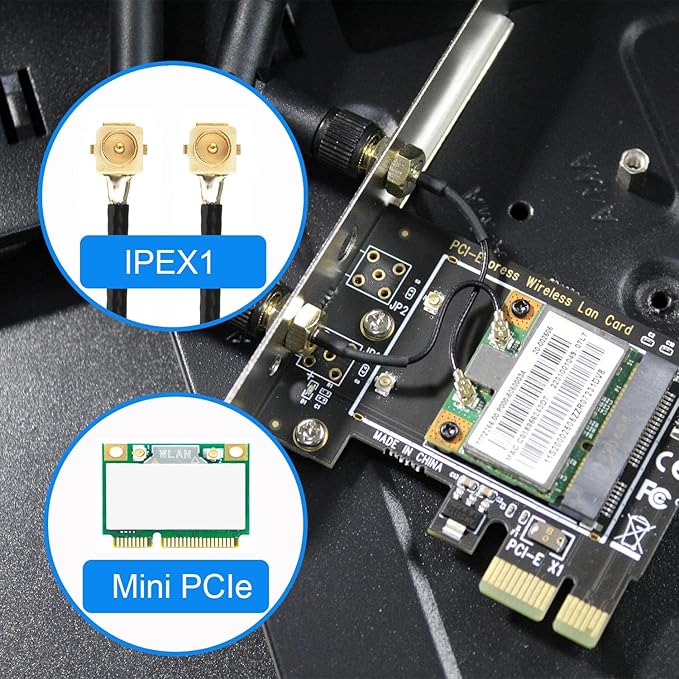 GLOTRENDS WA02 Mini PCIe - PCIe X1 WiFiアダプタ、ハーフハイMini PCIe WiFi 4/5/6/6e/Coral TPU モジュール用、3.5 dBi SMAアンテナ付属
