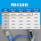 最高速度:PCIe 3.0 X 1(约~ 1 GB/s)。もしマザーボードのPCIE スロットがPCIe 2.0 X 16の場合は、PCIe 2.0 X 1(约~0.5 GB/s)の速度にしか達しません。