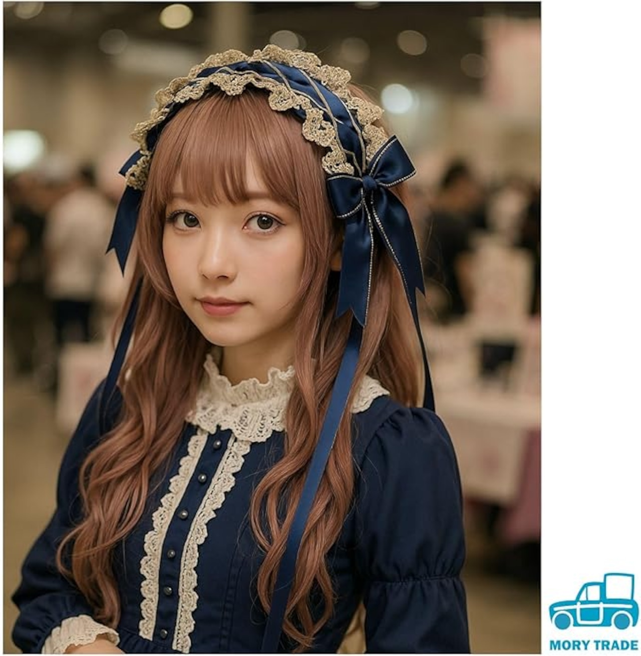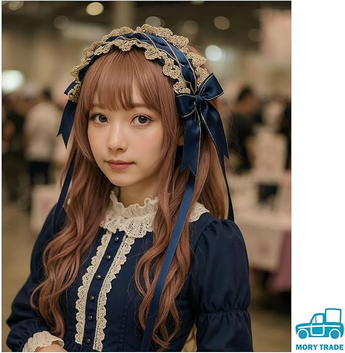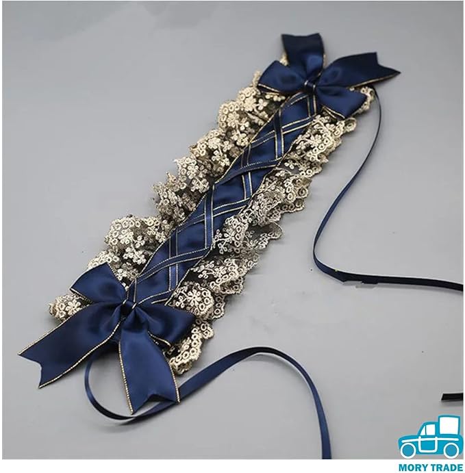 morytrade ゴシック ヘッドドレス レース リボン付き 髪飾り ビター系 ロリータ風 黒 ネイビー ハロウィン 撮影用 (ネイビーブルー)