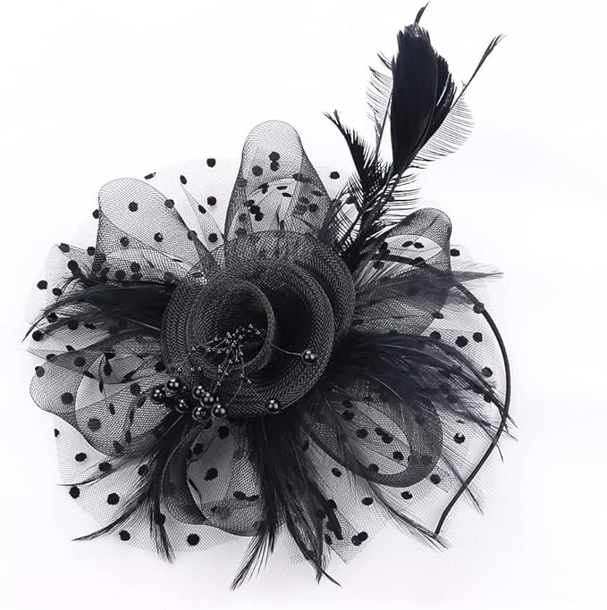 [SIQITECH] 羽根 ヘッドドレス カクテルハット レディース 優雅 貴族 ミニ トーク帽 メッシュ カチューシャ 礼装帽子 花嫁 髪飾り ヘッドアクセ 撮影小物 結婚式 フォーマル パーティー 披露宴 舞踏会 お誕生日 成人式 卒業式