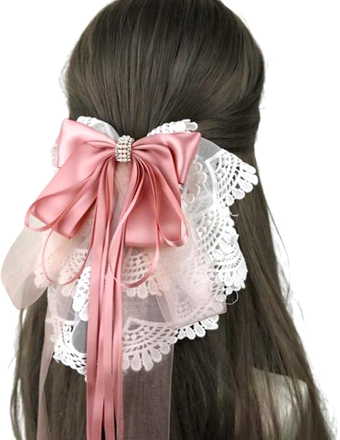 [SCGEHA] バレッタ 髪飾り レース リボンヘアアクセサリー ヘッドドレス ゴスロリ ロリータ お姫様 森ガール(スモークピンク)
