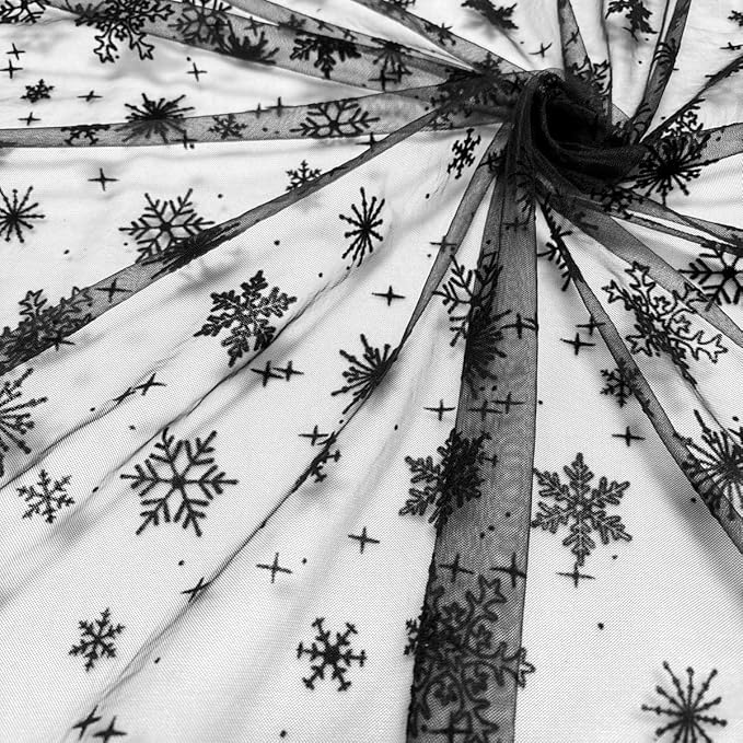 [moonfarm] 雪柄 チュール 生地 フロッキー 幅160cm 白 黒 レース 透ける 布 薄手 手芸 (黒, 1m)