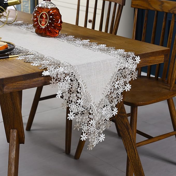 刺繍とレースのバランスが美しく、インテリアをワンランク格上げしてくれます。お料理をよりきれいに見せてくれる効果もありますよ。