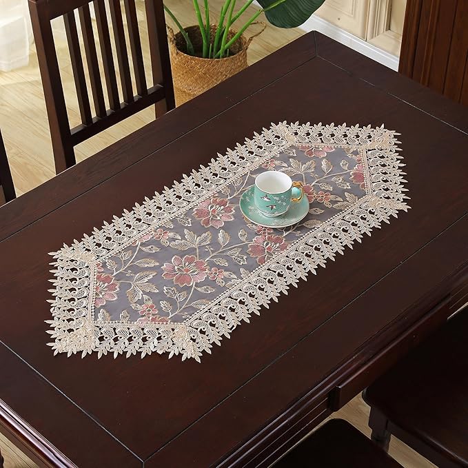 テーブルランナー レース おしゃれ 刺繍調 花柄 透け感 アンティーク 北欧風 センタークロス 食卓飾り 40*120cm (ピンクの花, 120)