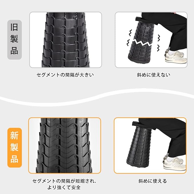 【使い方簡単、持ち運び便利】使い方簡単:少しひねりを入れながら両端を引くだけでスツールが完成。収納は逆方向に少しひねり を入れながら両端を押すだけで収納可能。また、ストラップ付きで、手に持ってでも、肩に掛けても、便利です。