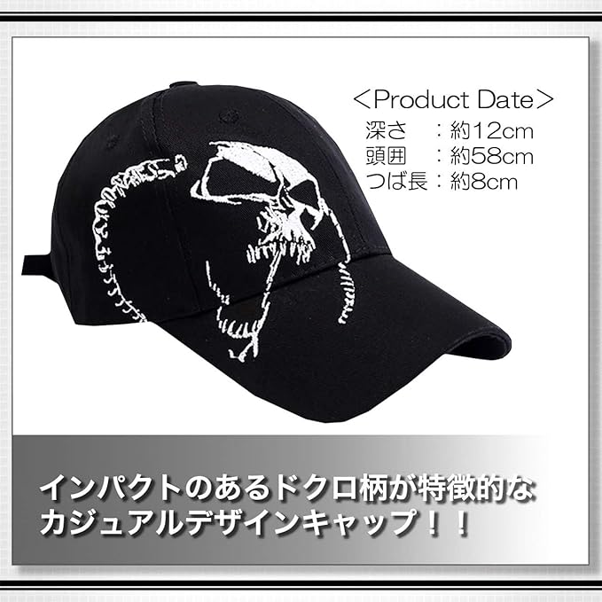 WHITE FANG(ホワイトファング) 帽子 キャップ 黒 スカル ドクロ ガイコツ おしゃれ かっこいい カジュアル メンズ CA189