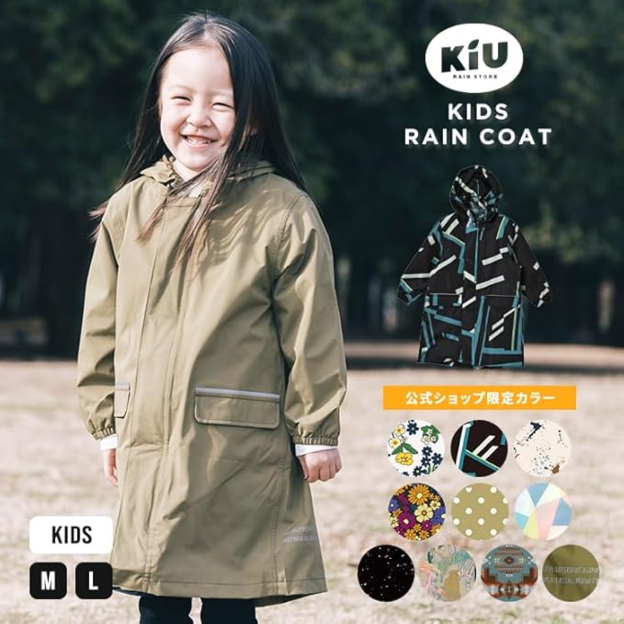 [キウ] 大雨対応 キッズ 袖付き 台風 コート はっ水 防水 レインコート 無地 フローラオフ K137M-050
