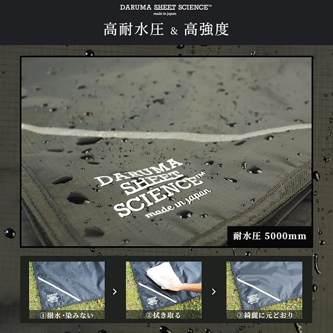 【日本工房製】DARUMA SHEET|2色 7サイズ展開 グランドシート 5000mm防水 厚手レジャーシート テントシート 独自ストラップ 収納袋付き