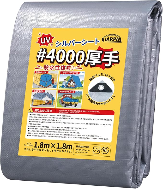 TARPAL シルバーシート 厚手 UVシート #4000 1.8m 1.8m 遮光ネット 耐久性 耐寒性 お花見 野積みカバー 約2畳