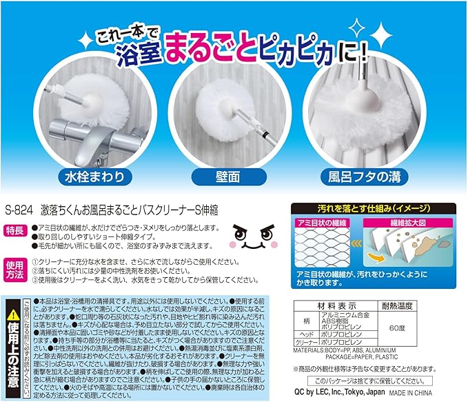 レック 激落ちくん お風呂 まるごと バスクリーナー ショート伸縮 47~68cm アミメ状の特殊繊維 バスブラシ お風呂掃除 ブラシ