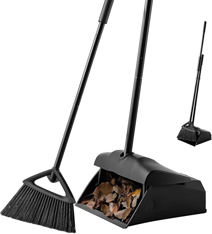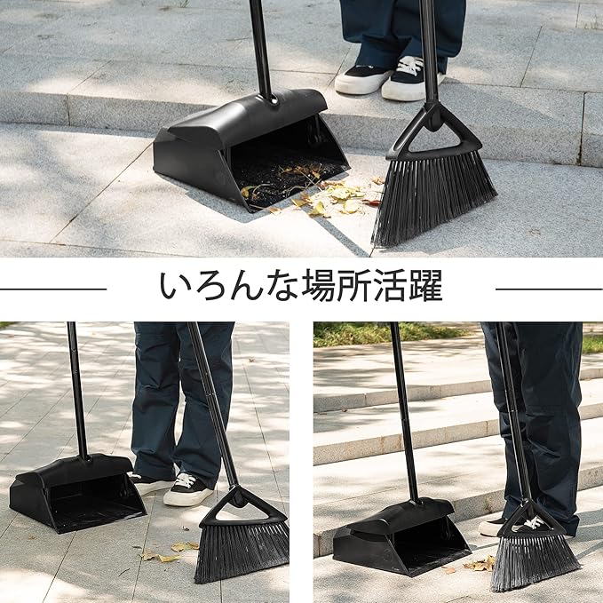 Eyliden 業務用ほうき ちりとりセット 立式掃除 掃除用品 ブラック 幅広い 長柄箒 蓋付き防臭防風 屋外 庭園 ベランダ 玄関 落ち葉 除雪作業 廊下 ホテル 学校 体育館 掃除 手汚れず