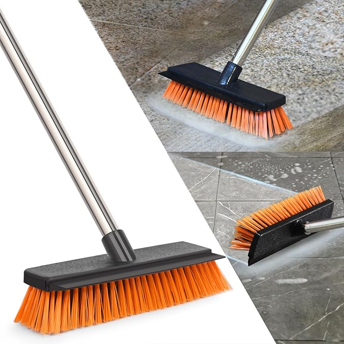 【耐久性に優れた設計】デッキブラシの強度と耐久性を確保するために、柄はねじ込み式のデザインを使って、さらに、頑丈なスチール柄を採用します。ブラシは耐水に優れたPET素材を使われて、硬いブラシで頑固な汚れを強力除去し、高耐久で清掃効率アップ!