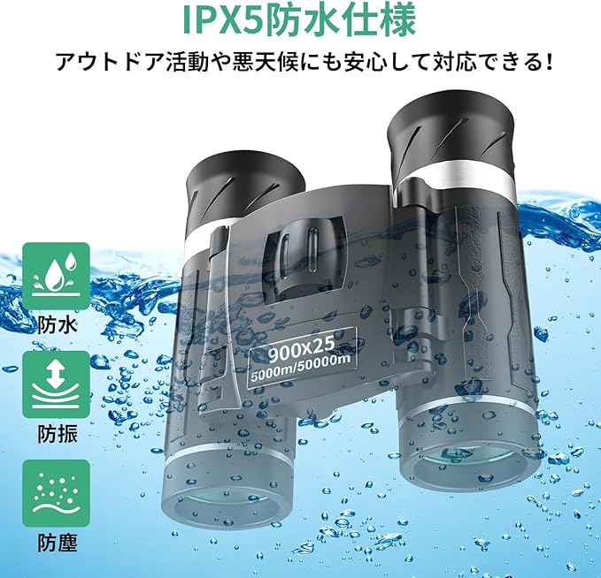 【生活防水&優れた防振機能】コンサート 双眼鏡はIPX5の生活防水です。雨や雪に強く、あらゆる天候や状況で使用できます。雨の中で使用した後は、乾いた布で拭いてください。防振双眼鏡は優れた防振性能を持ち、視点を動かした時のレンズの揺れを抑えます。長時間の使用でもめまいや吐き気を感じることはなく、美しい景色を楽しむことができます。