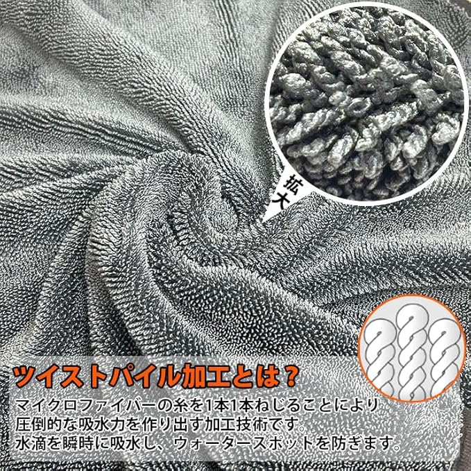 ACOAT 超吸収ドライイングタオル メチャス 大判 吸水 洗車タオル 拭き取りタオル カー用品 洗車後の水滴ふき取り用の超給水クロス タオル ツイスト構造 特殊ツイスト加工されたマイクロファイバーにより吸水率がアップ! ドライングタオル (グレー, Mサイズ)