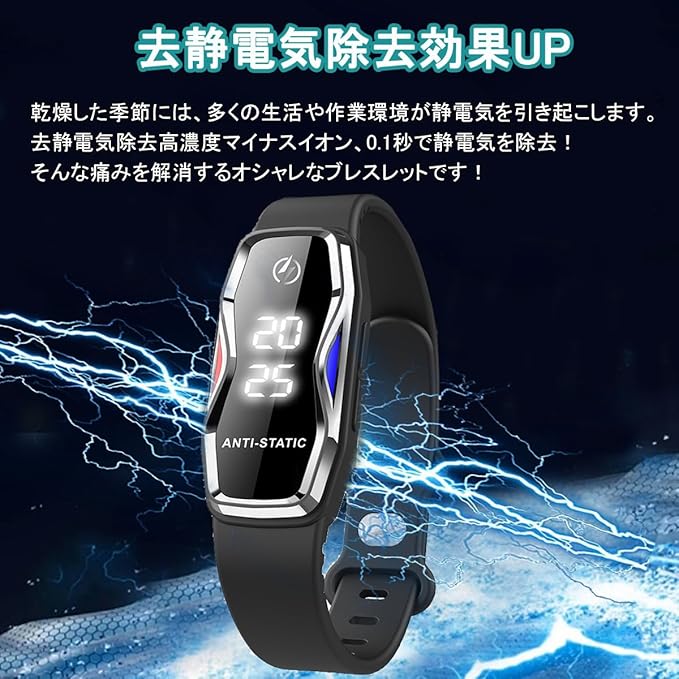 [Nowoto] 静電気除去 ブレスレット 【2025年冬新モデル】 静電気除去 グッズ 静電気防止 グッズ 静電気 対策 グッズ 最強 サイズ調整可能 静電気軽減/腕時計/Type-c 充電式/携帯便利 男女兼用 冬に最も適用 日本語説明書付き