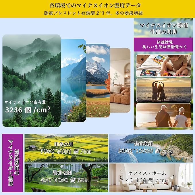⚡【物理式静電気防止 マイナスイオン補助 ブレスレット】高濃度マイナスイオンが体内の電流バランスを整え、静電気の放出を促進!痛みを解消するだけでなく、オシャレなデザインも魅力的です。乾燥期には、ドアノブや金属製品への接触時、衣類や髪の毛から発生する静電気など、生活・作業環境で多くのトラブルが発生します。当社のブレスレットは、人体由来や環境由来の大部分の静電気を物理的に防止・軽減!放射線ゼロ、無毒・無臭で安全且つ環境に優しく、高い効果を発揮します。※効果は個人の体質により異なりますが、通常 2~3 週間で効果が顕れ始め、長期着用でさらに効果的です