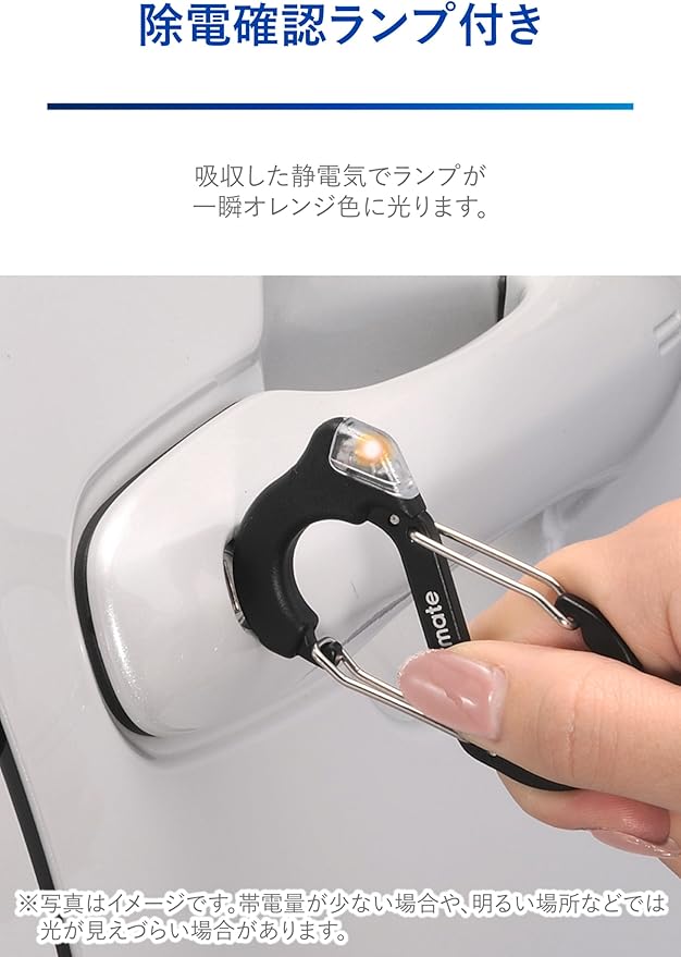 ●お求めいただく前に 本製品を強く引っ張らないでください。本製品が損傷することがあります。 本製品は防水仕様ではありません。 1kg以上の物をつり下げないでください。破損する恐れがあります。 ※帯電量が少ないときや周囲が明るいときは、ランプの光が見えづらい場合があります。 ※帯電量が多いときに触れている時間が短いと完全に除電できず、ショックが残る場合があります。