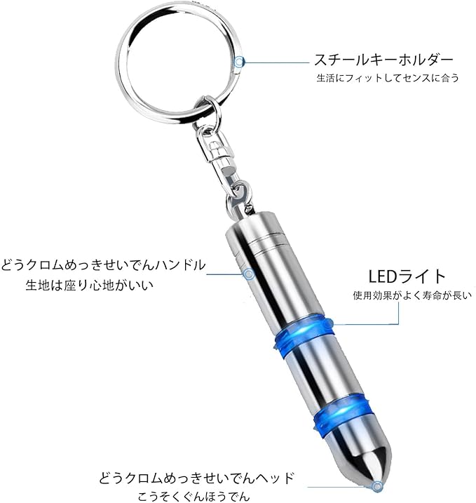 4.LEDランプの指示、はっきり見える、キーホルダーにはLEDランプが内蔵されており、放電時に自動的に点灯し、静電気除去プロセスを明確に表示します。注意:十分な光がある環境や静電気レベルが低い場合、LEDランプは点灯しない可能性がありますが、静電気除去機能は依然として有効です。