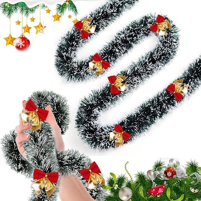 セット内容: キラキラガーランドセット、メッキモール2m 3本、毎本に12個リボン付き。クリスマスツリーの装飾に最適。