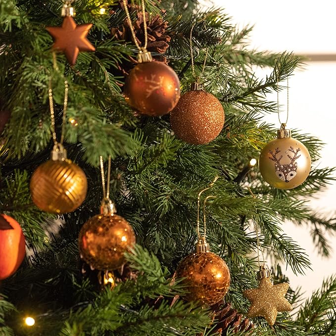 Valery Madelyn クリスマス オーナメント 5CM 35個入り 森のコッパー ゴールド ブラウン ツリー飾り オーナメントおしゃれ かわいい 雑貨 飾り付け ユーロッパ風 北欧風 インテリア