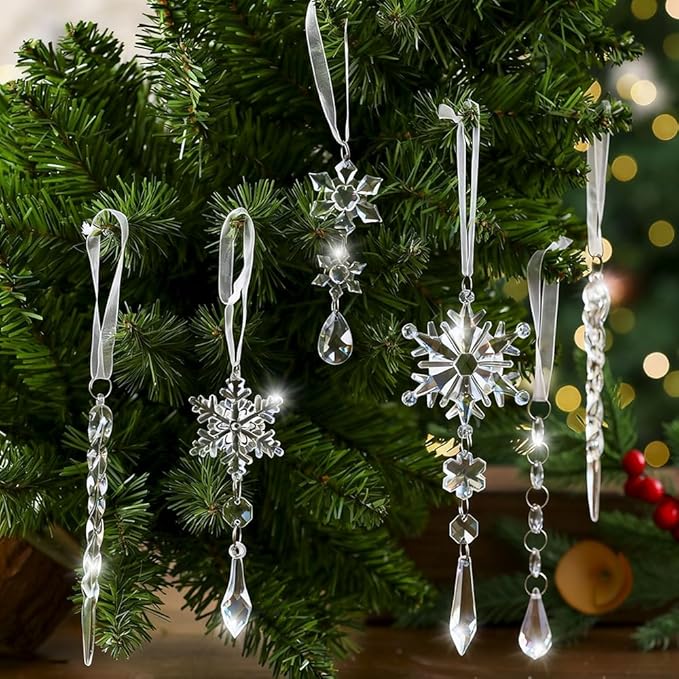 18 個入りでコスパ良く、雪の結晶・氷柱のデザイン、クリスマスの雰囲気を満喫する高品質アクリルで割れにくく、繰り返し使用可能光を反射して美しく輝く透明デザイン吊るしやすく、DIY や多用途装飾に最適クリスマス以外の季節のイベントにも活用可能