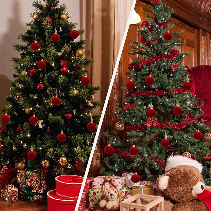 15個セットクリスマス オーナメント クリスマスツリー 飾り レッドベルベット ボール吧 ツリー用 ツリーフロックオーナメントボール 家族 ホリデー ウェディングパーティー 吊り下げデコレーション(3cm)