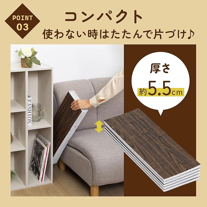【どこにでも置ける・折りたたみできる】:自立するのでどこにでも設置OK。使わないときは折りたたんで片付けられる。