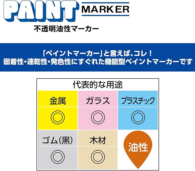 金属・ガラス・プラスチックなどへの筆記に最適。太さも選べる3タイプ。