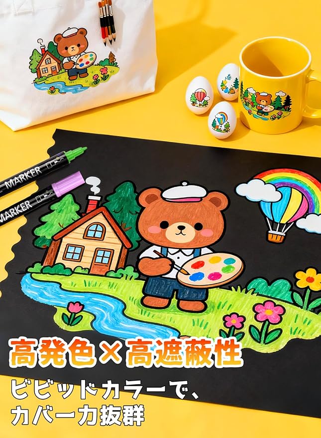 【多シーン使用】アクリルマーカーは、紙、カードストック、岩、木、プラスチック、キャンバス、布、陶器などの素材に絵を描けます。このイラストマーカーは複数のシーンでのdiyにご使用いただけます。
